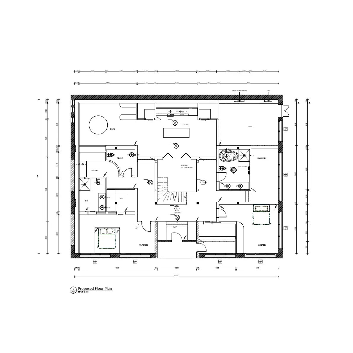 Convert a stripped warehouse into a suitable home for a couple that frequently has guests over. A minimum of 2 bedrooms and sufficient recreational and home office space. Utilise external consultants to design a second story to maximise space. Exisitng services cannot be moved from slab, consider this in planned gas/ plumbing locations.